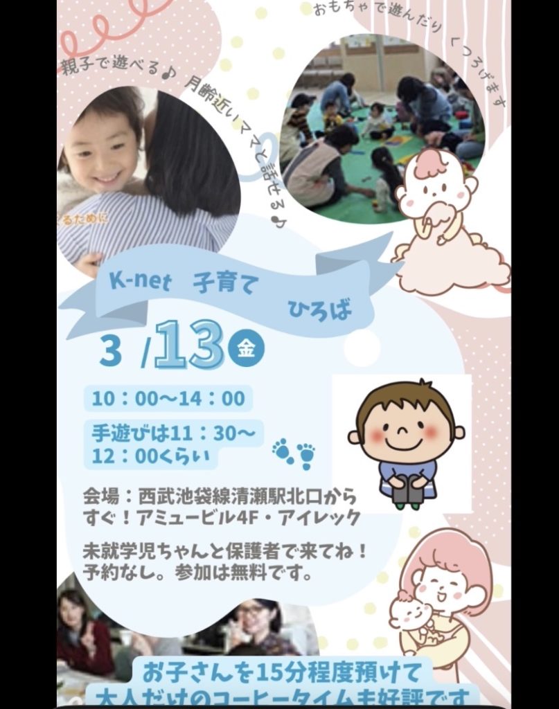 *K-netひろばは、未就学児と保護者が対象です。